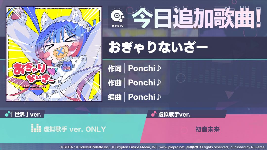 7/16 15:00起,将追加歌曲《おぎゃりないざー》!