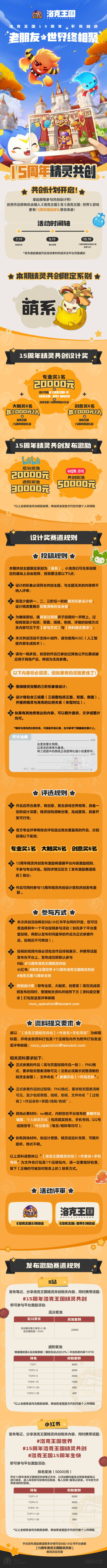 官方将评选出精灵共创设计奖(专业奖+大触奖+创意奖),小洛克们需要将指定资料投递到官方邮箱,同时大家可以在b站或小红书发布自己的精灵设计作品,携带指定话题投稿,有机会获得精灵共创发布激励!(详细发布激励规则可前往平台搜索【15周年洛克王国精灵共创】查阅活动页面)~