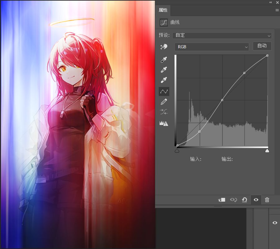 我个人不太喜欢大面积的过曝,所以没有去仿。总之这类光效也不光有动感模糊这一种做法,路径模糊甚至涂抹工具和径向模糊也能有相似的效果,不过动感模糊最简单最省事。