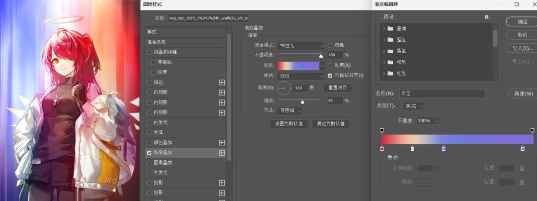 4.再复制立绘,修改渐变,放大当背景,混合模式正常
