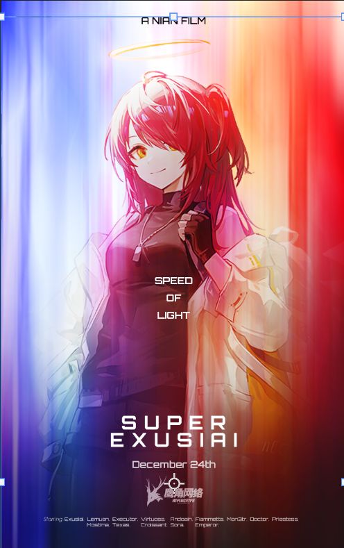 之所以说是类《超人》光效,是因为《超人》光效的精髓是有方向的模糊,以此表现速度感,但本文这张图虽然有模糊,但光的颜色和亮度不一样。颜色要和人物匹配,至于亮度,《超人》海报曝光那么高是为了表现超人伟光正的形象,配合特别黑的暗面,有一种“从黑暗飞向光明”的感觉。