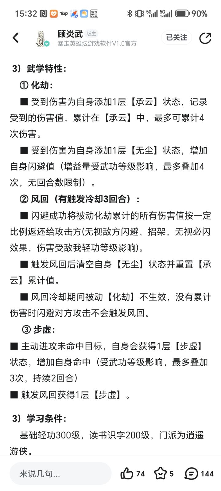 ①新轻功受击可以记录四层伤害,并可叠加四次闪避,在成功触发闪避后可将一定伤害奉还