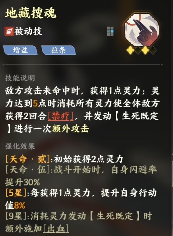 这里重点提一下白无常,他的被动无消耗释放大招,还能挂禁疗(这里可以克制小怪回血),9星还能挂出血,不说pvp,pve绝对是张神卡,很多本都能就业,大家后面资源多可以重点养一下。