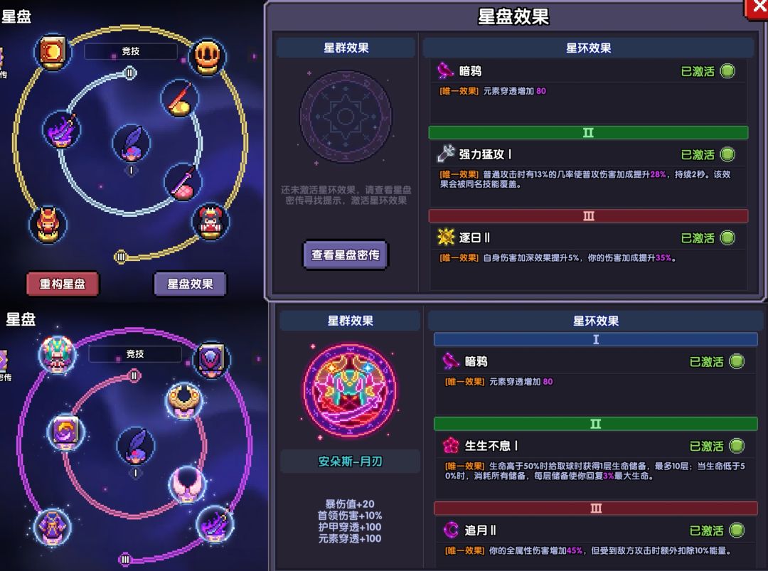 (ps.主要就两种带法,三日二刀的散搭和月刃星群。双穿缺口较大时推荐携带月刃。)