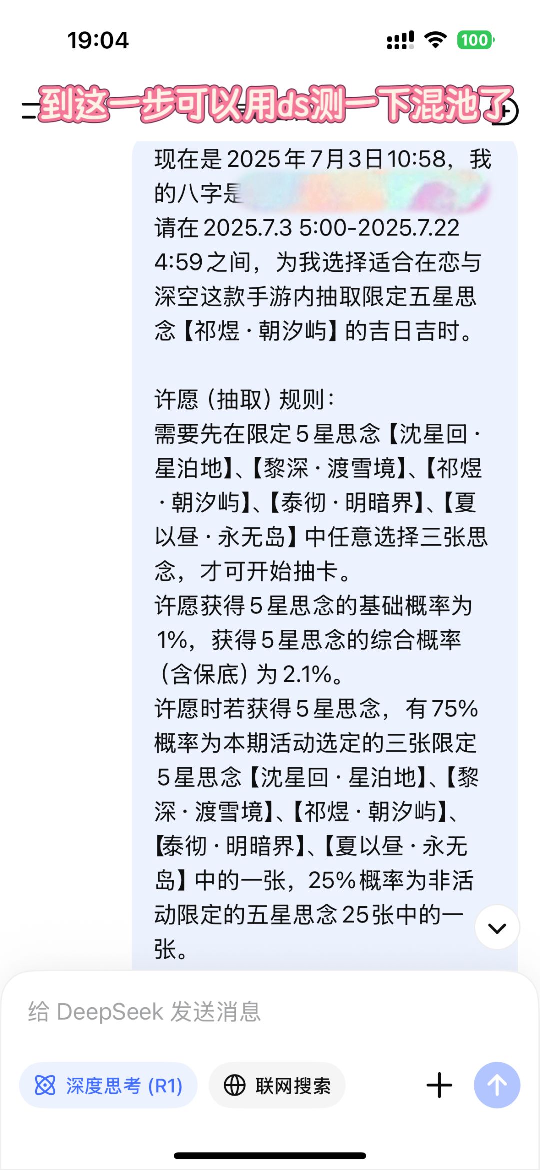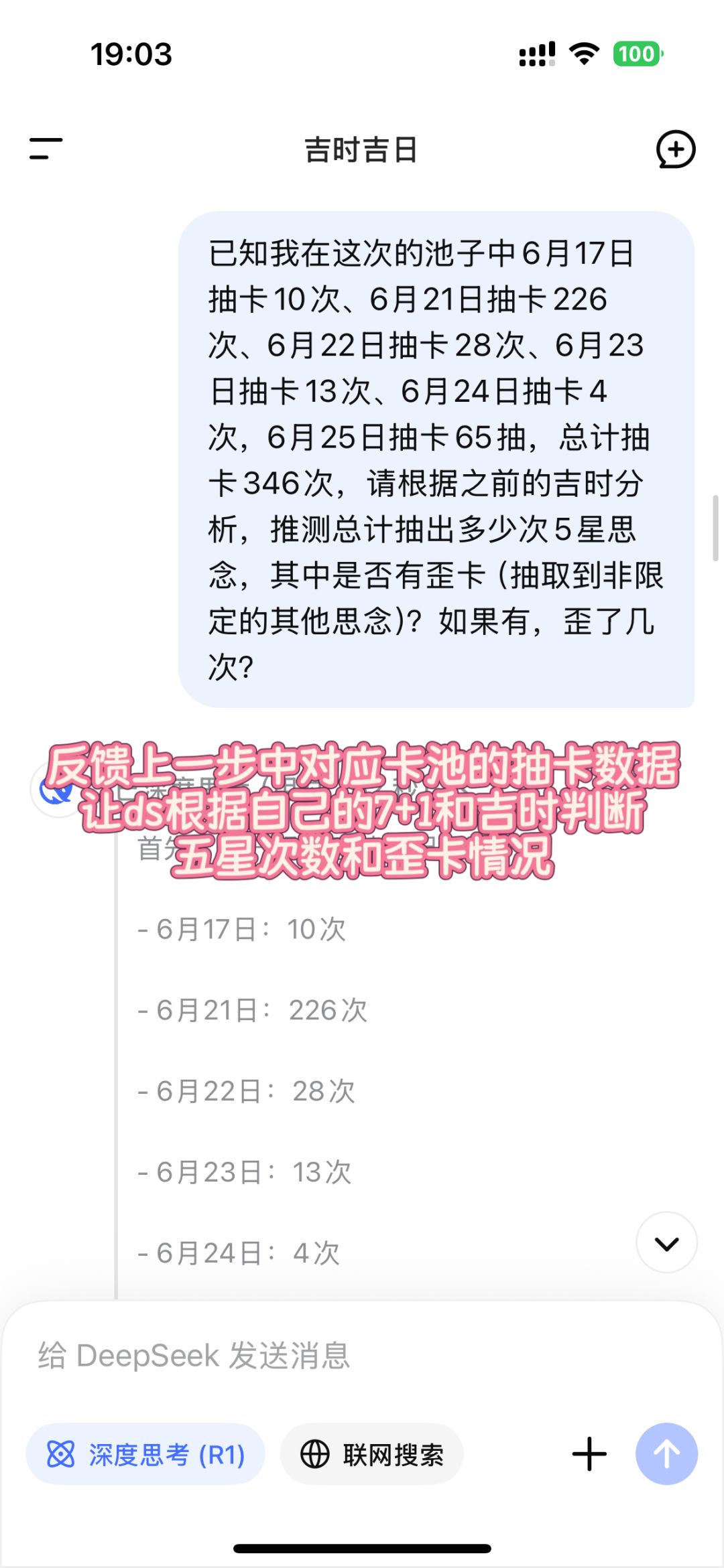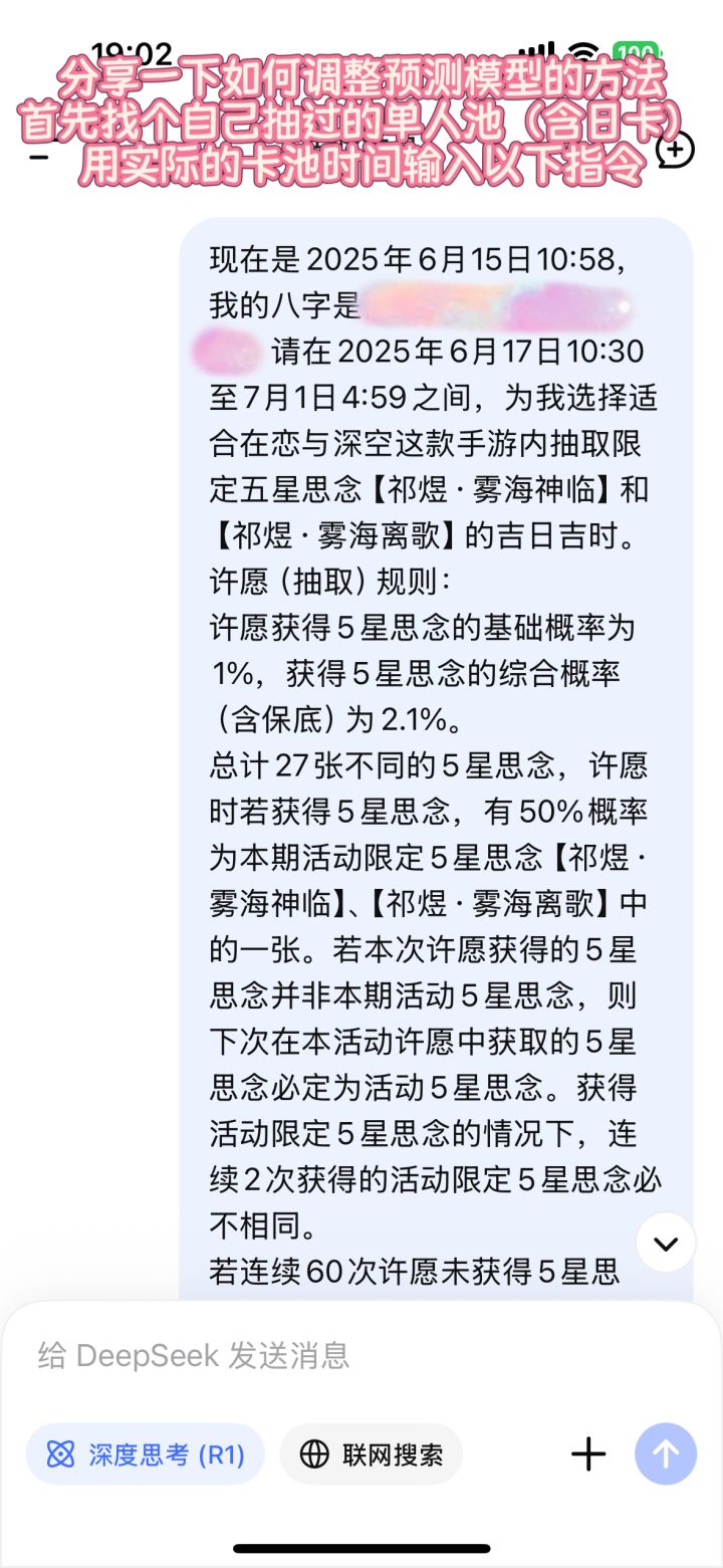 DeepSeek测抽卡精准度已经具体到抽数了吗?