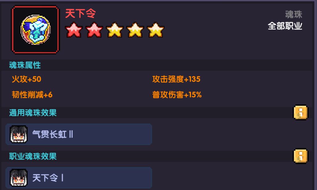 资源不太富足的玩家可以考虑不拉天下令,其本身的魂珠属性【普攻伤害】对忍者来说也是无用的