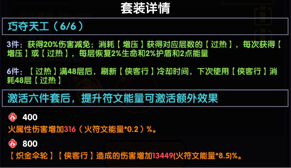 400能量获得最常见的火属性伤害,800能量增加技能伤害倍率