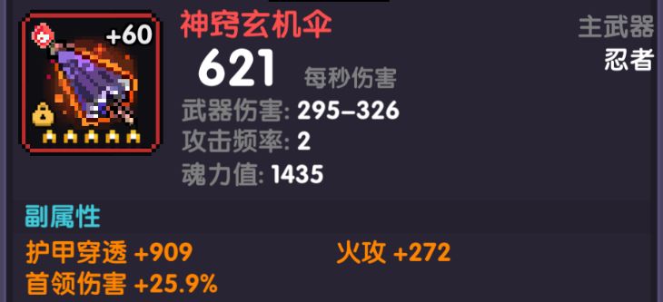 1.主手魔女武器神窍玄机伞:首领伤害+暴击值(前期)/火攻+护甲穿透