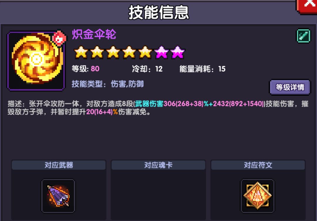 4.四星后普攻以及紫色技能【炽金伞轮】都得到强化,输出可观