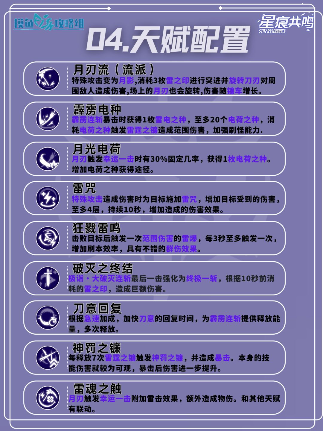 月刃流整体天赋可以从霹雳连斩进行强化,加快刀意的回复,最后通过多次打出雷霆之镰从而打出高伤害。