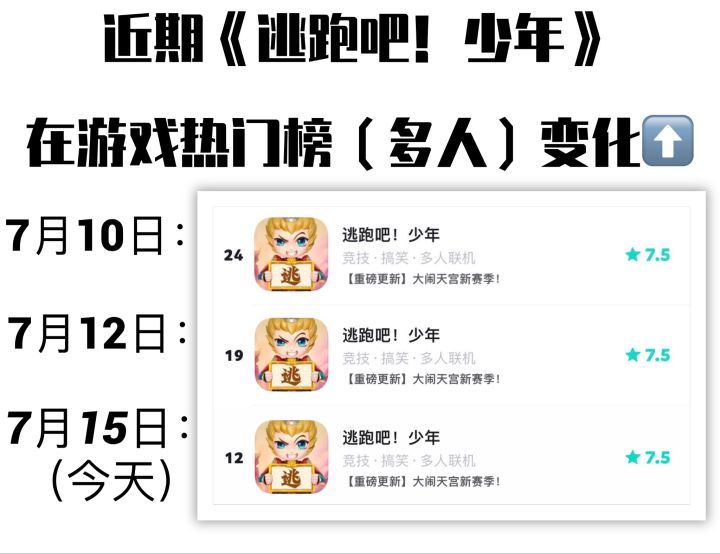 《逃跑吧!少年》在游戏榜上的最新排名✨
