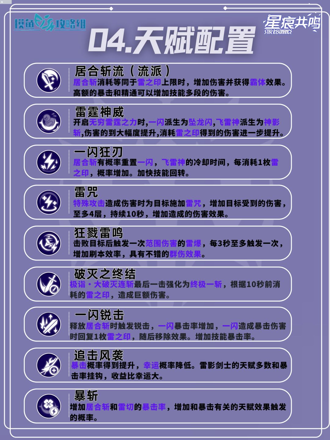 一闪和飞雷神通过派生强化后的技能伤害也较为可观,也可作为主要输出技能。居合流更适合单体例如BOSS类短时间内打出单体高爆发。*内容基于星痕共鸣创作体验服制作~
