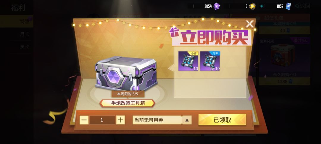 量子特工君!能不能把购买限制改一下。。。一周只能买一次 这样没意义啊,等太久了!