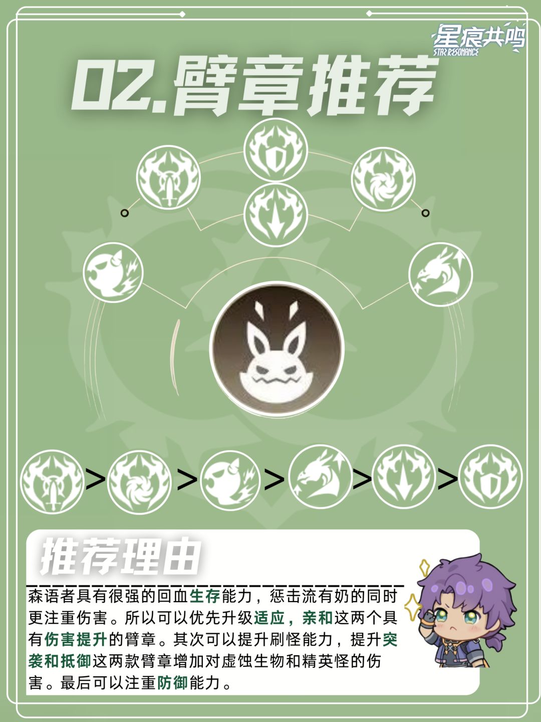 作为辅助型职业,惩击流森语者在保障治疗生存的同时还有一定的输出手段,推荐用于前期主线或是过日常任务,效率还是很高的。