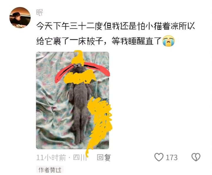 高温给小猫盖被子,图3的爱猫人士令人发汗😂