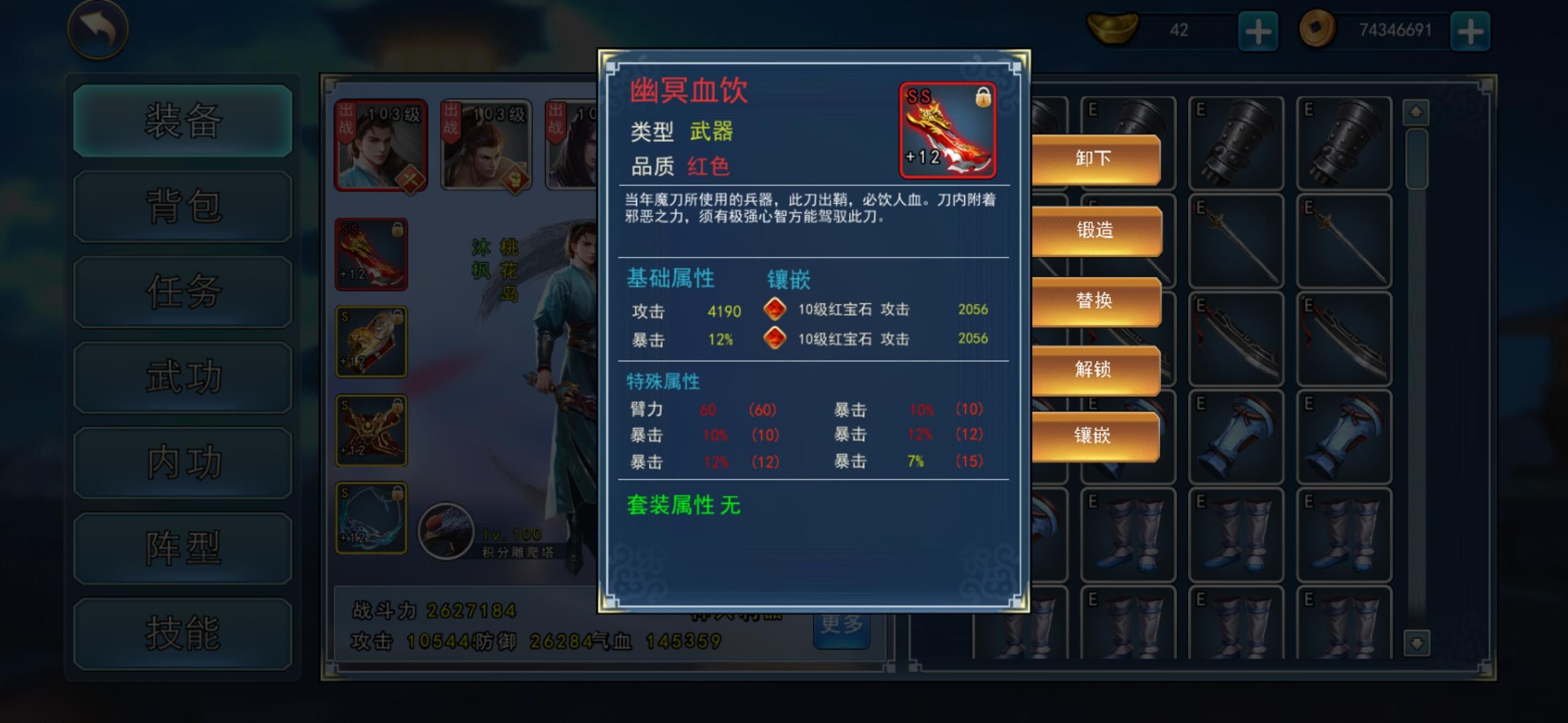 刚打通天塔890层,暴击不够了。咬牙把2暴击3爆伤的大砍刀洗成了全暴击。然后,,,爆伤又不够了。真是醉了,还是打不过。