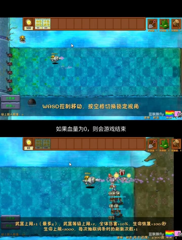 - 生存旅行模式:有12波高强度僵尸连续进攻,终极奖励是获得控制植物魔法猫娘。