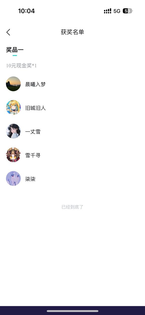 =奖品1=恭喜以下五位主公获得10元现金*1!