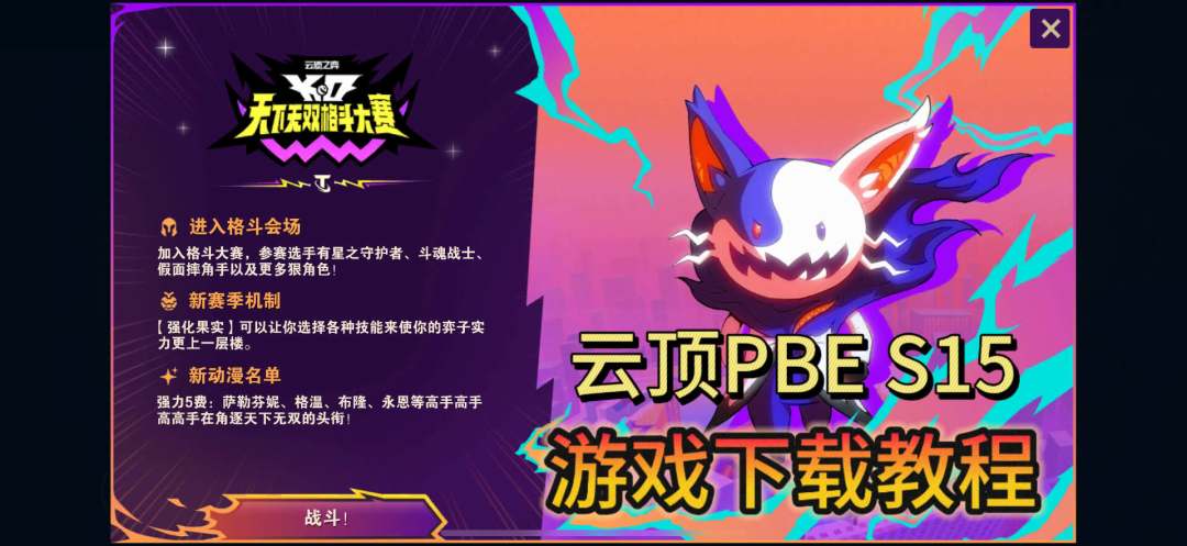 云顶PBE S15新赛季【天下无双格斗大赛】已正式上线!
