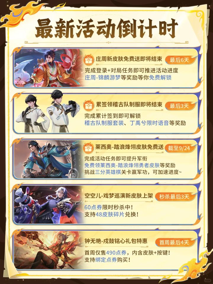 【最后6天】庄周-锦麟游梦新皮肤,登录+对局免费送~