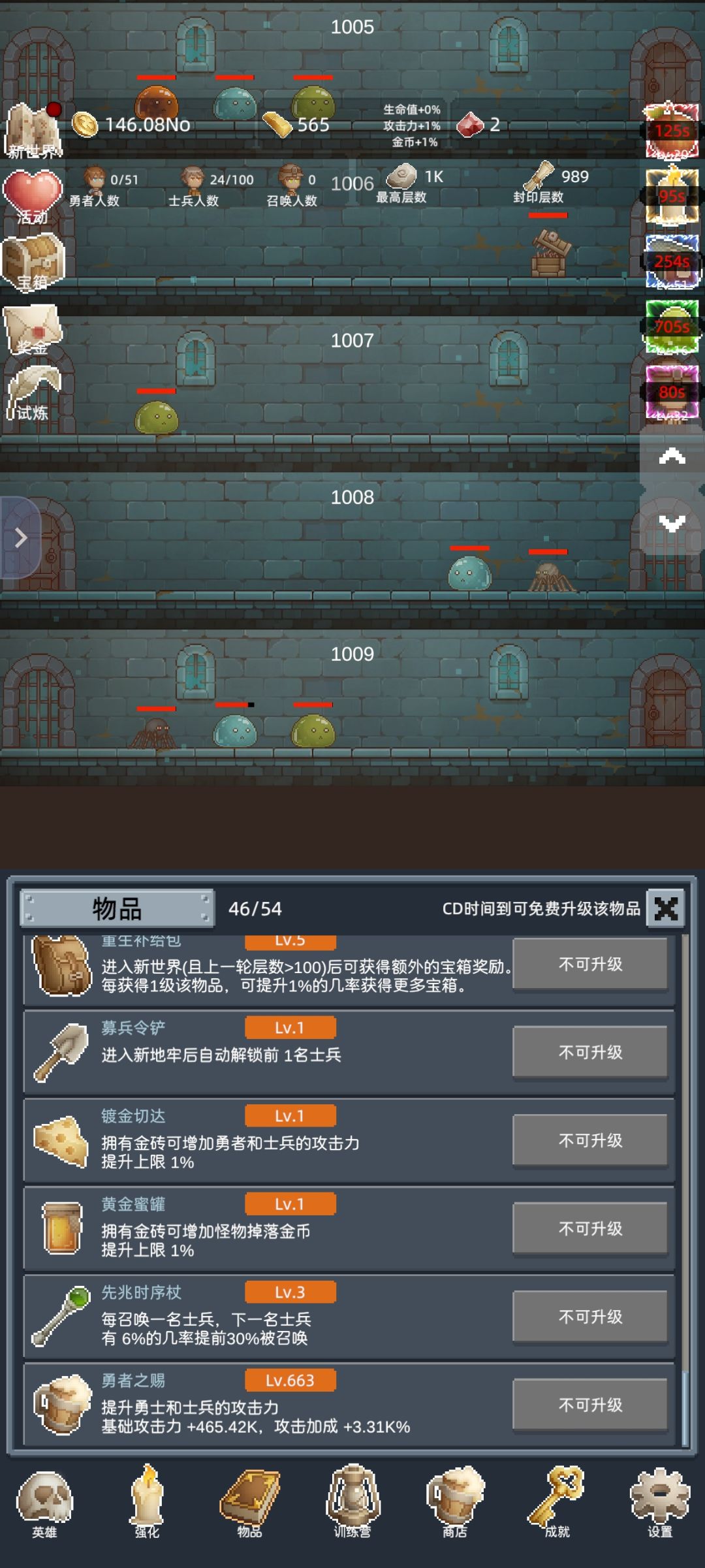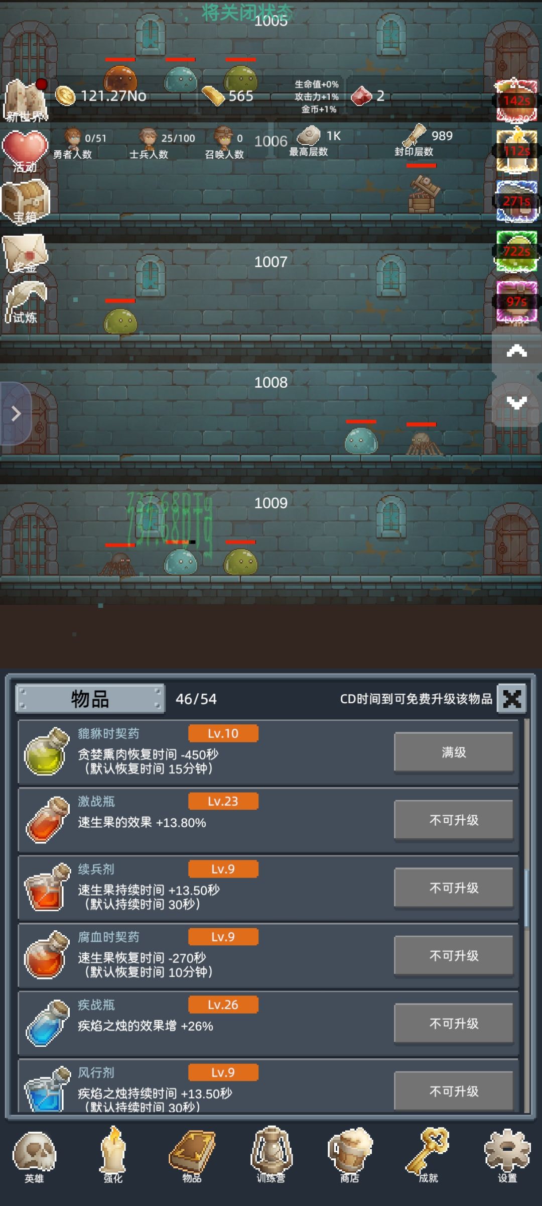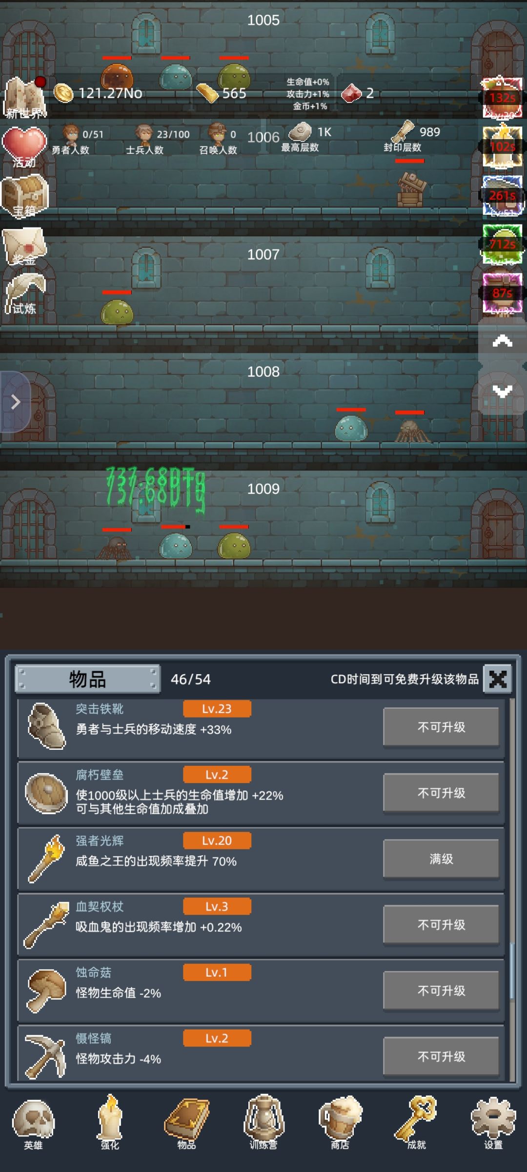 前期玩法就是无脑刷刷刷,速刷100,120,150,200,循循渐进,持续推进。目前楼主处在速刷200层8分钟节点。
