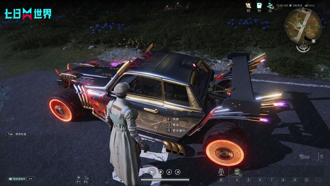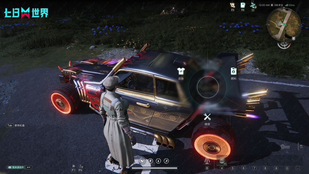 3、为避免按钮太多的问题,现在低频次的所有载具操作(如载具维修、皮肤更换、增加燃油等)都将收入轮盘。