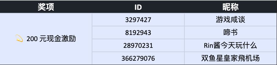 感谢大家积极参与本次活动,恭喜以下小伙伴获得现金奖励!
