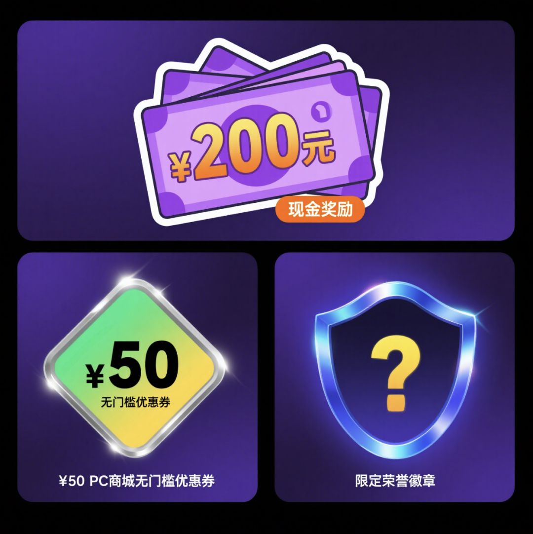 - 奖励: 50 元 PC 游戏商城无门槛优惠券!💵 (7 月 26 日开始逐步发放,买新游戏更香!)