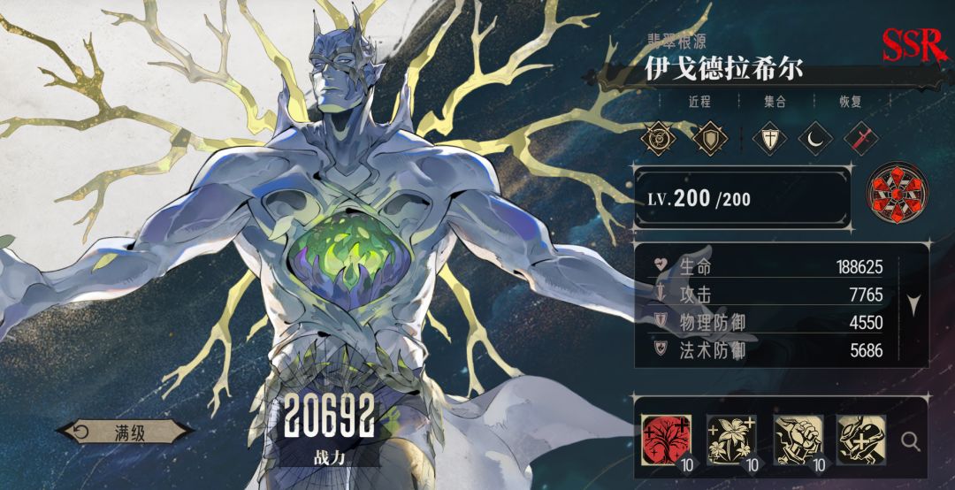 伊戈德拉希尔可给领域英雄提供减伤,有独特的“聚集”功能,对抗部分BOSS时可调整己方眷属位置,但打AOE队时,会聚在一起挨打。