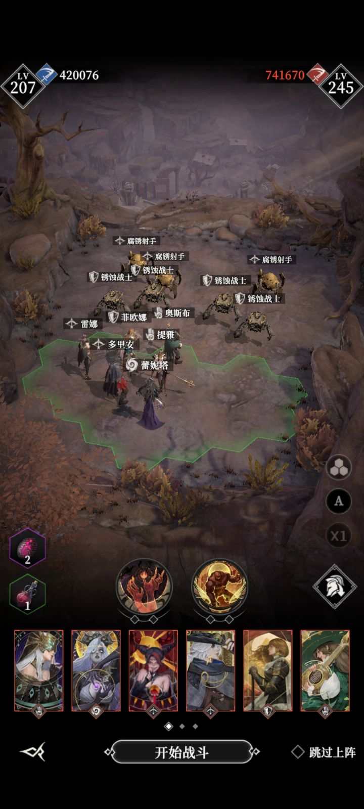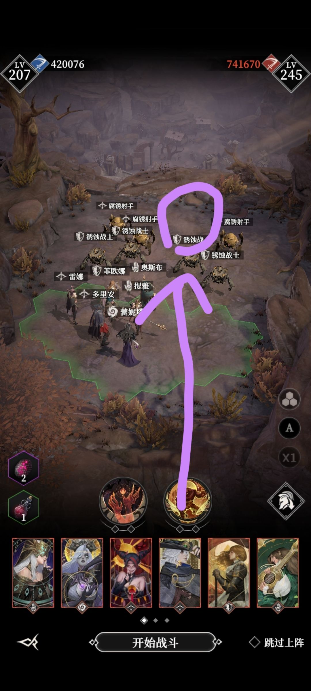 要点一:站位如图1。如图4,开局马上在中线最后一个格子放石头人,一定要将后排小兵击退。击退失败就重开吧。