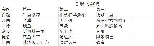 【新服小秘境榜】