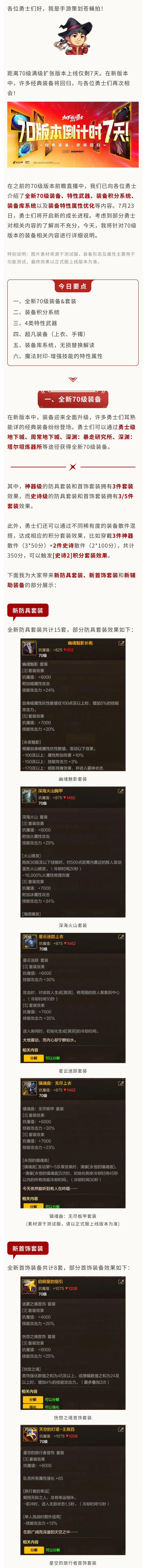 距离70级满级扩张版本上线仅剩7天。在新版本中,许多经典装备将回归,与各位勇士们再次相会!