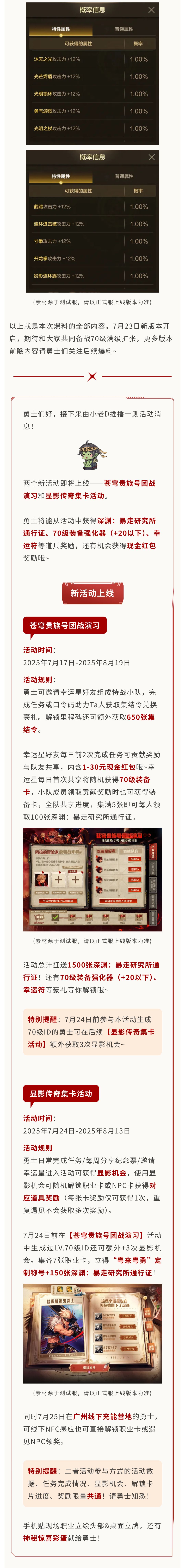 在之前的70级版本前瞻直播中,我们已向各位勇士介绍了全新70级装备、特性武器、装备积分系统、装备库系统以及装备特性属性优化等内容。7月23日,勇士们将开启新的成长进程。考虑到部分勇士对相关内容的了解尚不充分,今天,我将针对70级版本的装备相关内容进行详细说明。