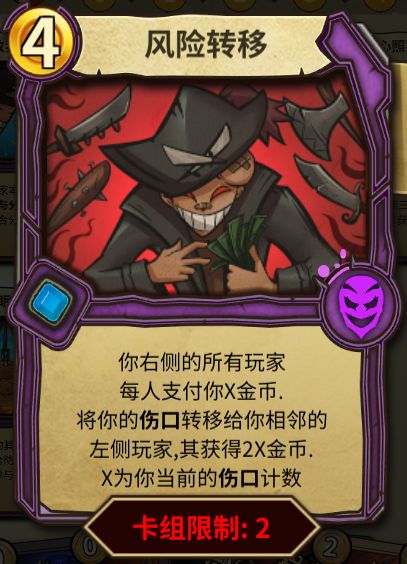 前期可以通过当仁不让赚取本金,打出制衡以后用入梦和其他带有恢复效果的卡控制自己的伤口层数并过牌,中后期持续叠加护甲和支付效果,当伤口层数到达一定层数及时打出风险转移控制局面,从而达到致胜的效果。