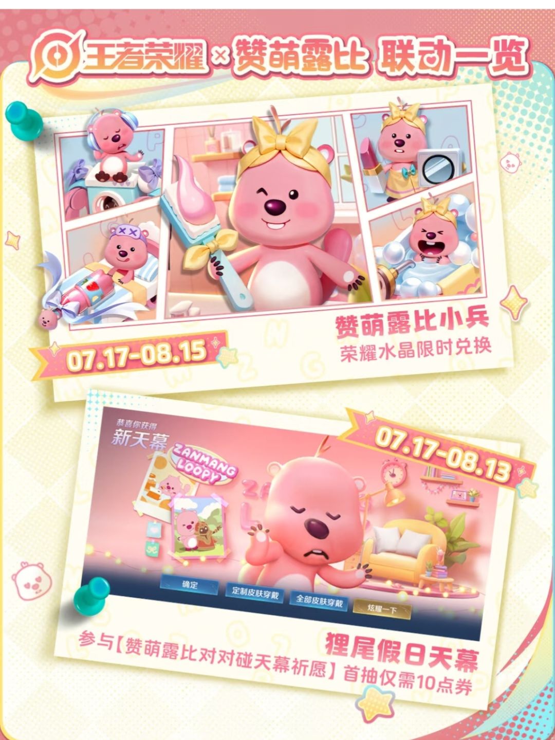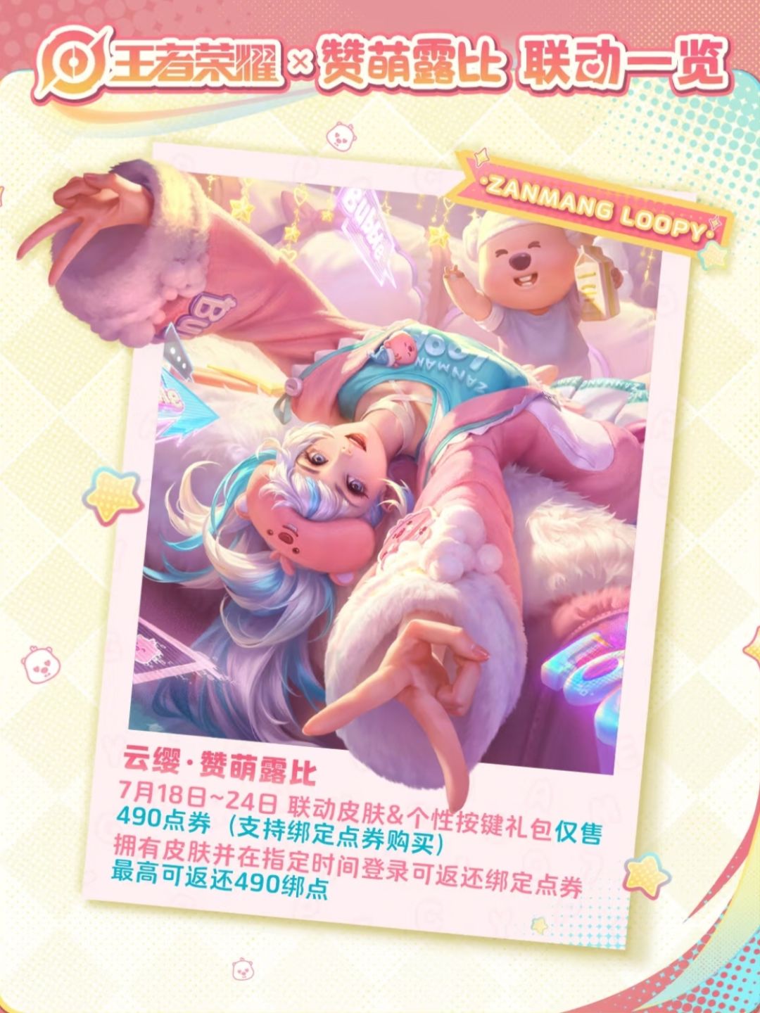 就在今天早上(7.17)王者再次空降联动!本次联动是运营和赞萌露比的史诗皮肤,依旧首周490点券!