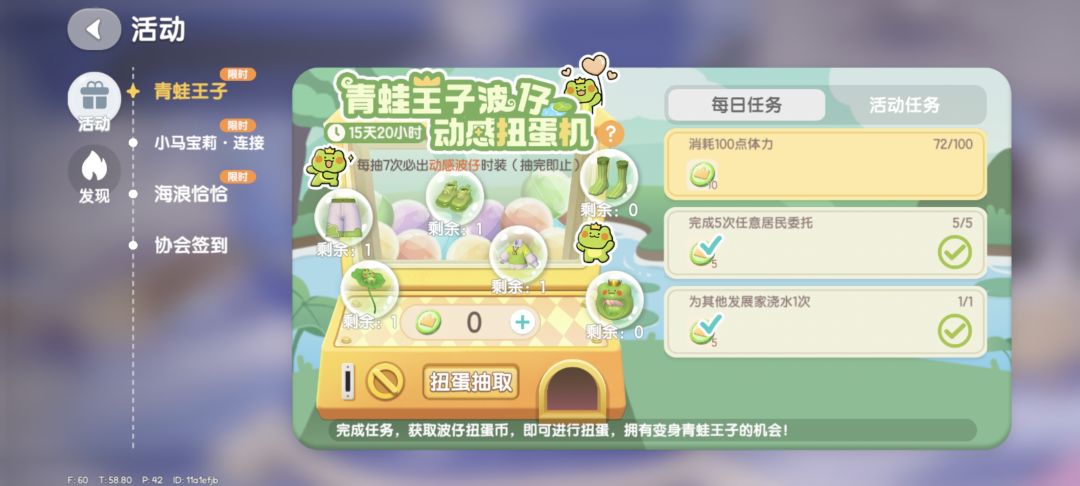 🐸青蛙王子活动🐸:每天采集萤石跟溜溜橡木可以多抽两次,今天在9号,10号房
