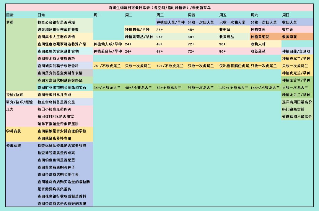 奇蛋生物每日可做日常表/种植表