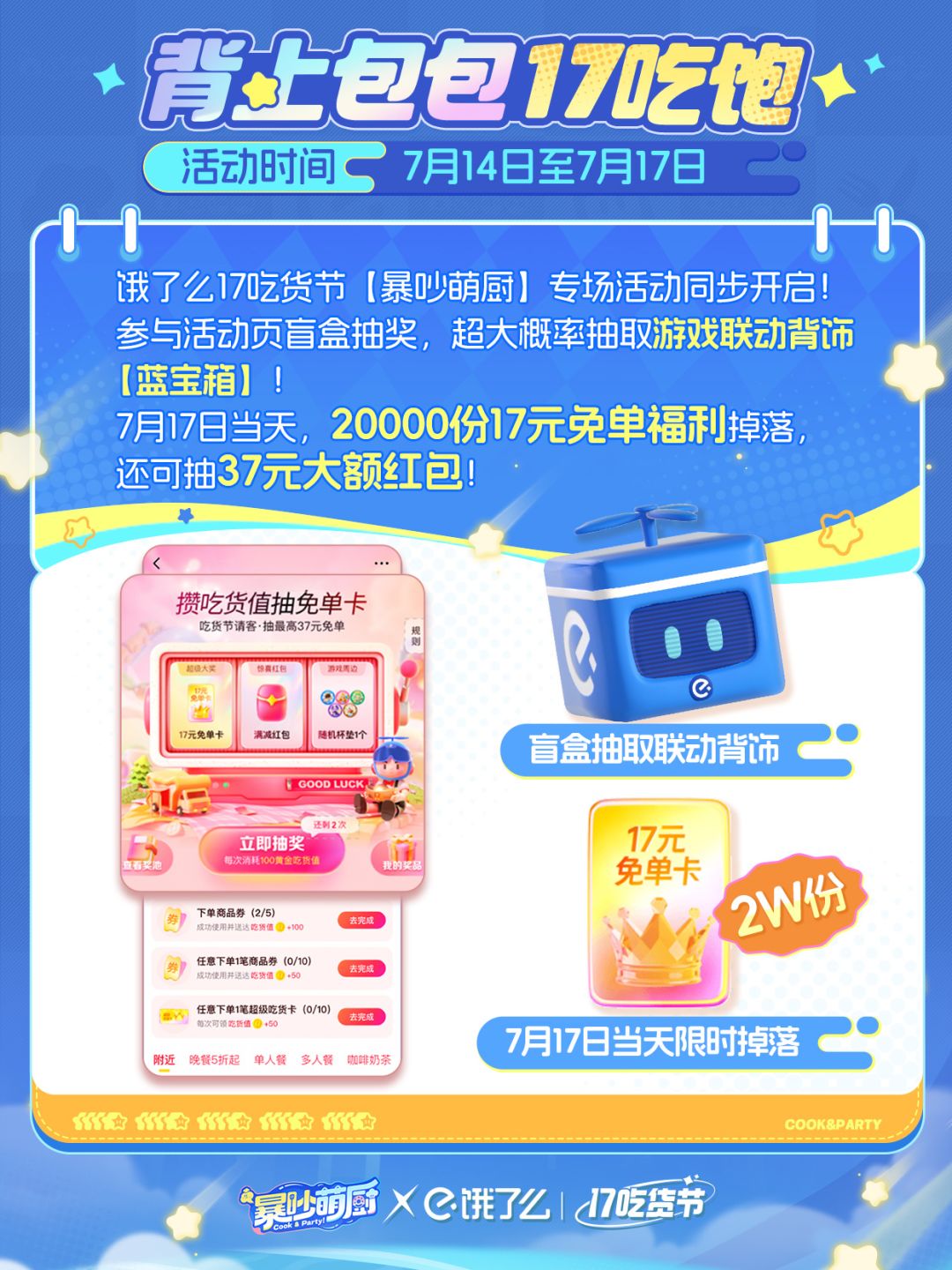 料理师们,现在前往饿了么暴吵萌厨活动专场,参与盲盒抽奖啦!
