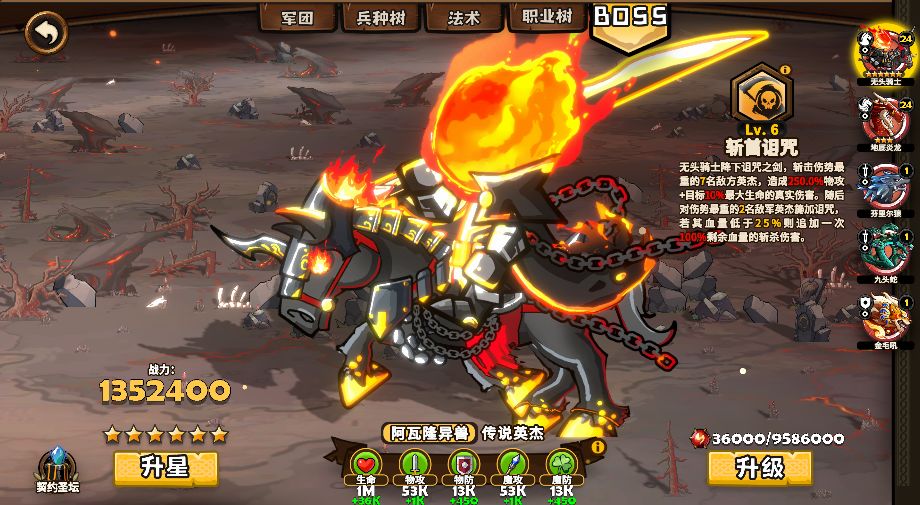 ●领主们可以在每个军团选择上阵的BOSS。可随时更换上阵BOSS