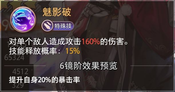 对3个随机敌人造成攻击320%的伤害;降低目标20%的免伤率,持续整场且不可叠加;60%概率触发狂饮效果,伤害提升100%,并击晕目标一回合;触发狂饮后,自身脱力眩晕1回合。