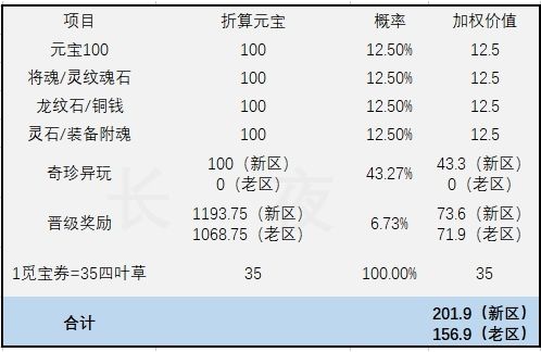 ①奇珍异玩,项下道具类别较多,新区策略估算为100元宝,老区基本均为溢出材料,估算为0元宝。