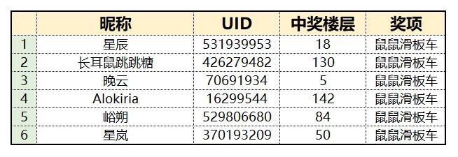 开奖咯!本次活动获奖名单如下: