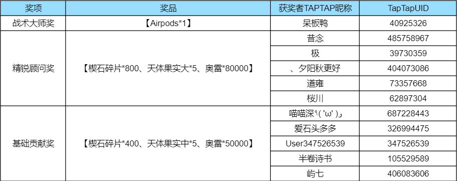 精锐顾问奖(5名):楔石碎片*800、天体果实大*5、奥雷*80000