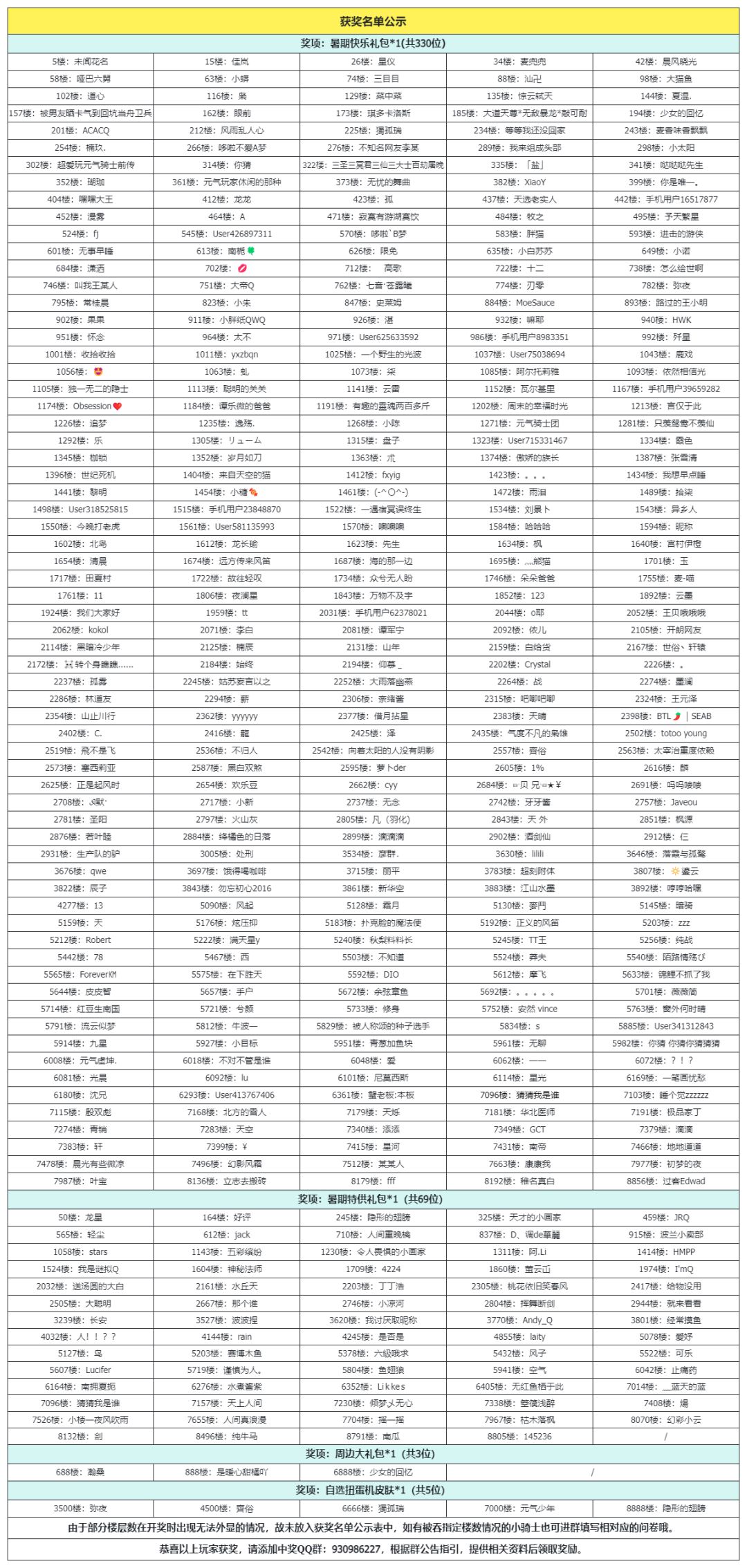 恭喜以下幸运的小骑士获得活动奖励,请中奖的小骑士添加获奖群:930986227,请加获奖群后,登记相关获奖信息,超过15个自然日未进群未登记视为放弃奖励~