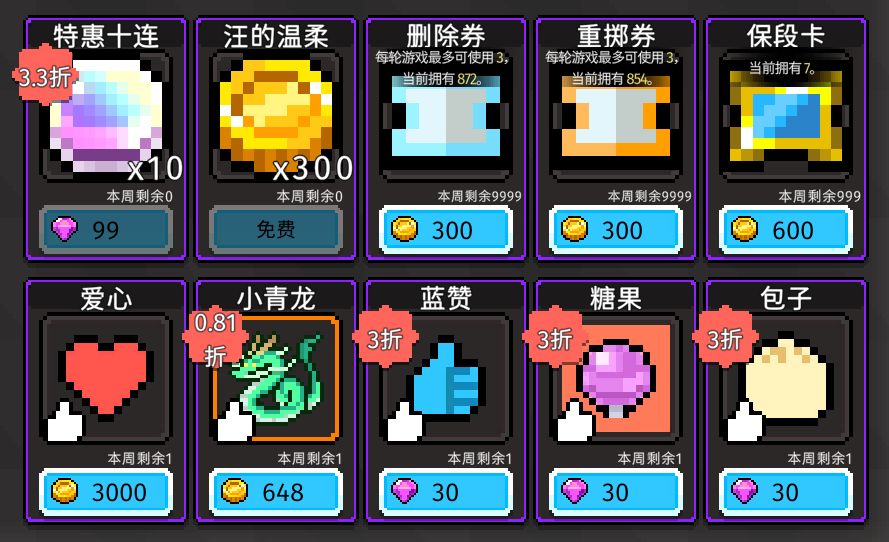 应某位不知名的玩家的要求,加某目标物加入【周商店】。