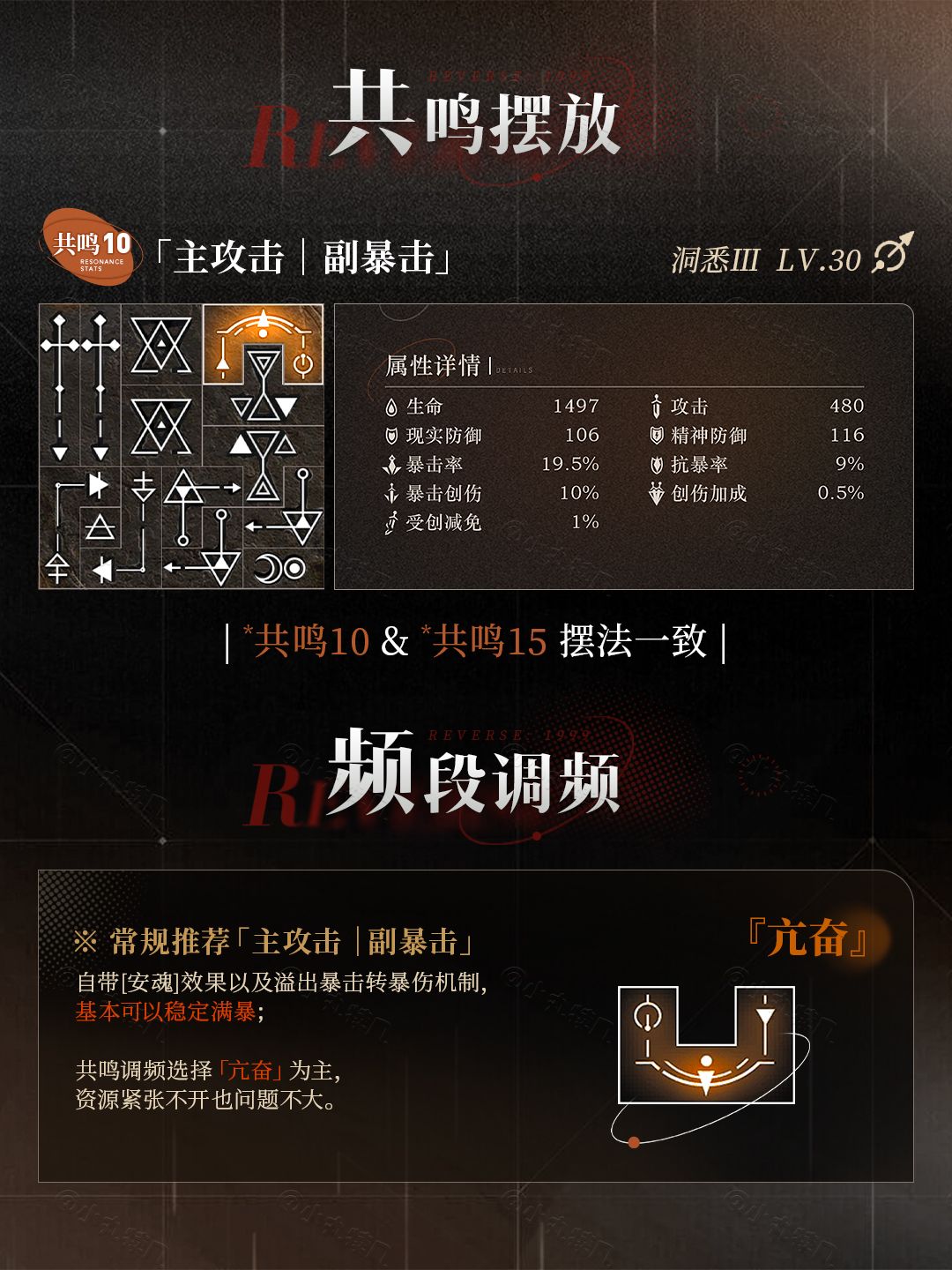 ※共鸣10&15共用,『主攻击副暴击』摆法: