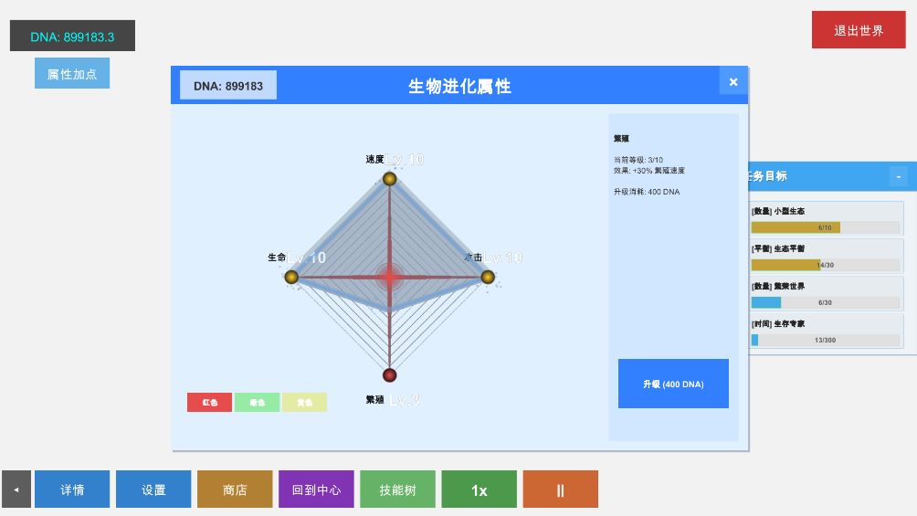 核心玩法:维持生态平衡,防止任何一种生物灭绝或过度繁殖!