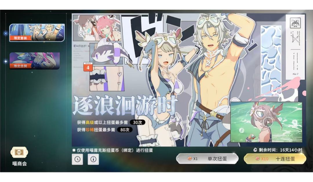 但暖暖玩家在卖进度同时,也要注意一下自己战力,毕竟这游戏打造战力不追极限只需求过本是比较轻松的。另外如果是月卡党是可以稍微兼顾战力和暖暖的,因为现在月卡给的绑钻能抽外观,虽然抽出来的是绑定不可交易,不过相对来说是宽裕许多的,理论上3个多月就能硬吃一次保底。