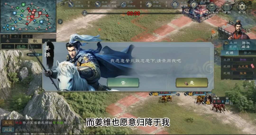 “听闻姜中郎爱民如子,吾率大军前来,志在必得。若与吾交战,必引城中百姓生灵涂炭,民不聊生。为大义,何不归顺吾军,免遭祸殃?”