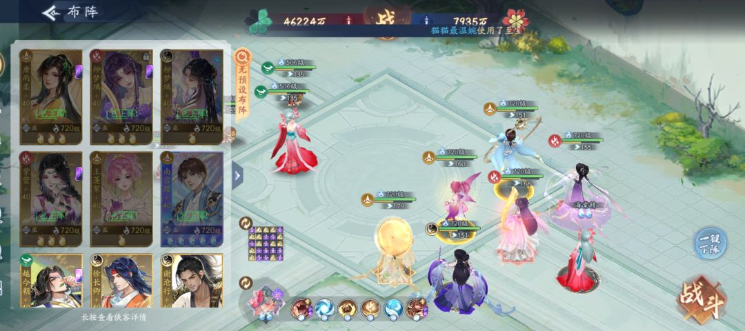 因为唐雨柔满速+玉珏也达不到228速,所以她速度达到219以上,就基本可以站到回合结束。这样一直用珠映红提供30增伤,装备5行不要求也能抗住
